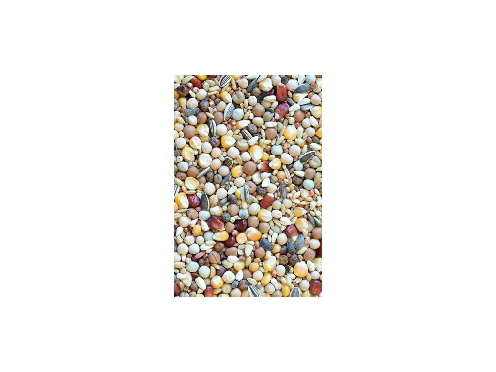 Složení směsi: Kukuřice LUIGI CS 21% Sorgo červené 12% Ječmen loupaný 10% Hrách žlutý tříděný 9% Dari 8% Hrách zelený tříděný 7% Světlice barvířská 7% Peluška 4% Kukuřice bordó extra 4% Proso žluté 3% Oves loupaný 3% Pohanka 2% Slunečnice černá drobná 2% Slunečnice žíhaná drobná 2% Rýže bílá 2% Rýže paddy 2% Proso bílé 1% Proso červené 1%
