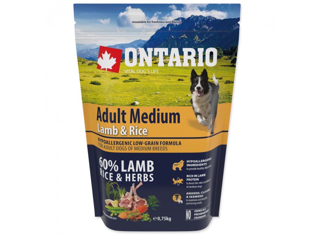 Ontario Adult Medium Lamb & Rice 0,75kg