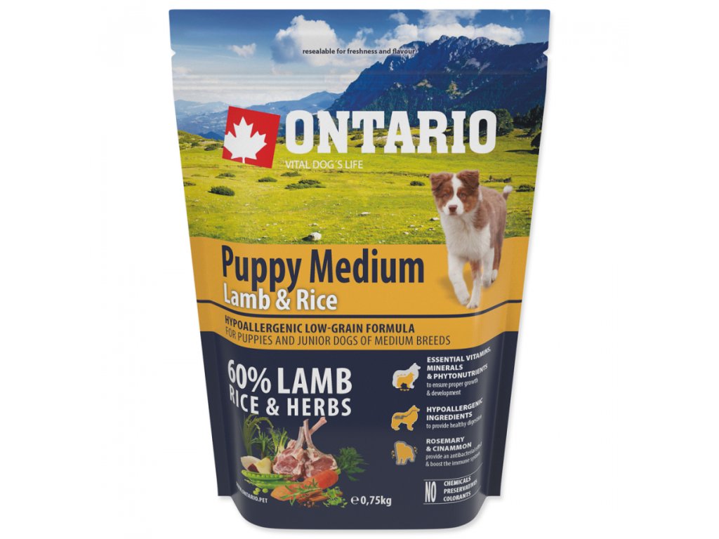 Ontario Puppy Medium Lamb & Rice 0,75kg