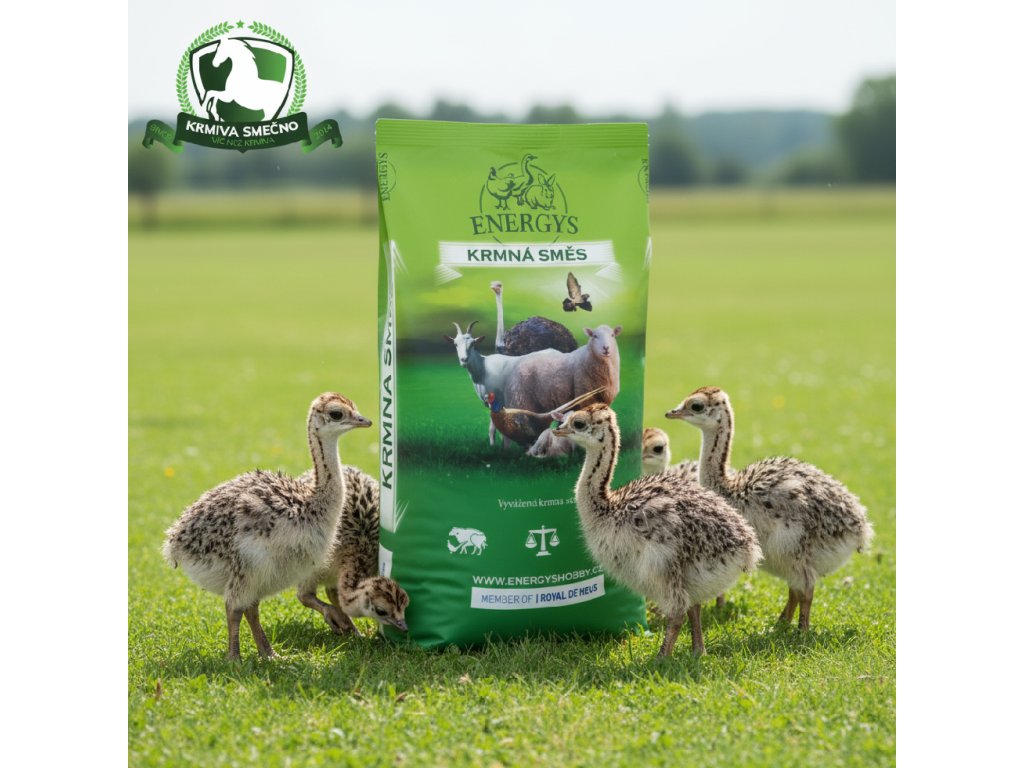 krmivo určené speciálně pro mladé pštrosy. Toto krmivo je navrženo tak, aby splňovalo všechny nutriční potřeby mladých ptáků a podporovalo jejich zdravý růst a vývoj.